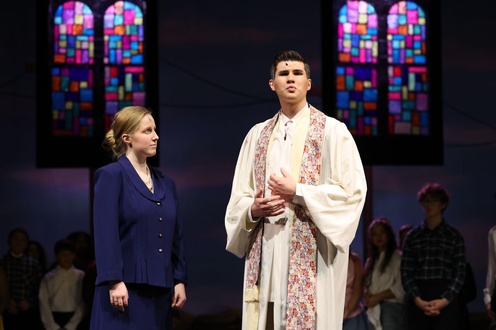 The talent doesn't end there another vocally gifted cast member, Aiden Simpkiss, portrayed Reverend Shaw Moore with striking emotion. In "Heaven Help Me," Simpkiss revealed his character's private suffering behind his cold behavior towards his family, emphasizing the Reverend's following arc of healing and growth in Act II. Lauren Cusick as Rusty was a powerhouse of a performer. Not only did her comedic delivery frequently prompt laughter, but her strong vocals in "Somebody's Eyes" and sharp dance moves in "Still Rockin'" made her stand out among Garnet Valley's catalog of talented performers.